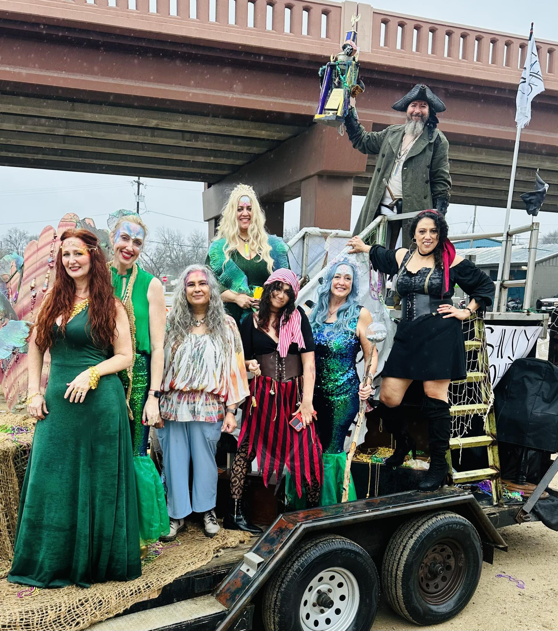 We grabbed several of our loyal friends and fam who love to have FUN, told them to come as mermaids & pirates, and then...we built a float.